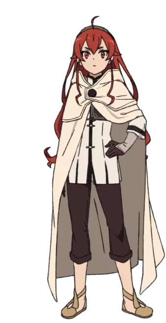 | Fille de noble et une cousine éloignée de Rudeus. Au tempérament explosif, elle dispose d’un potentiel dans le style de l’Épée sacrée du dieu du Sabre. Pendant leur voyage pour rentrer chez eux à la suite de la catastrophe magique, elle développe peu à peu des sentiments pour Rudeus. |