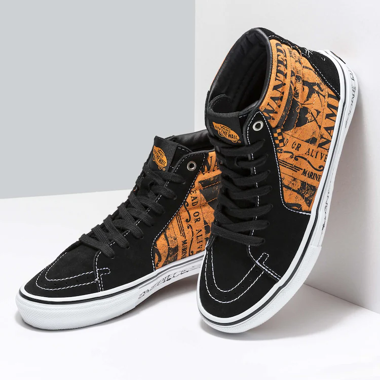 Il s’agit d’une collection qui comprend des sweets, des tee-shirts, mais surtout des modèles de chaussures/baskets qui ont fait la renommée de la marque. La ligne reprend ainsi les différents modèles de chaussures, Sk8-Hi, Vans Classic Old Skool, Vans Classic Authentic et la Vans Skate Classics pour les réadapter à l’univers du Pirate Mugiwara, en mettant en avant dans ses designs le style d’un artiste japonais : Kukki.